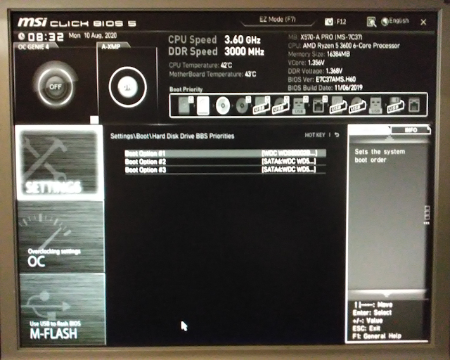 "Boot Priority" gave me a wrong drive. SSD seemed to be gone from "Boot Priority" line.