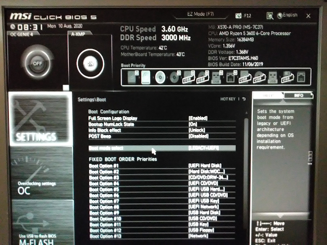 Officially only options LEGACY+UEFI and UEFI were available. To install Server F32 on SSD Drive I selected CD-DVD device as boot able. Afterwards everything went fine and system was installed in pure Legacy BIOS Mode on SSD. Problem has raised up a bit latter after testing via pressing "F11" I was able to make sure that SSD drive is a primary boot able device and decided to make this configuration static. But any drive from nice line of small pictures