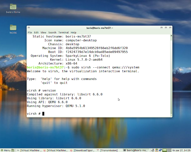 Following below is verification deployment os SparkyLinux 2020.08 as KVM
