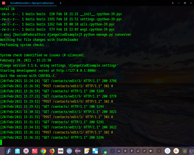 (.env) [boris@fedora33srv djangoCrudExample]$ ls -CRl