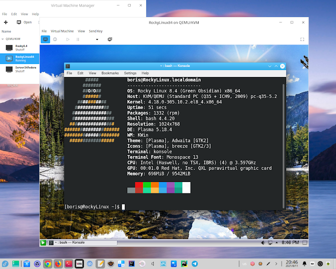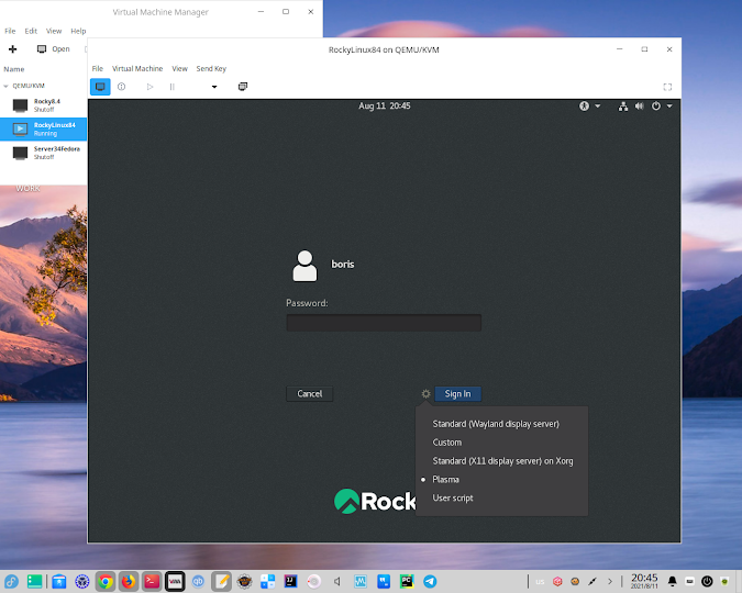 Following below is a brief set of instructions setting up KDE Plasma on RockyLinux along with Gnome Desktop Manager which is actually needed to support graphical login, otherwise system might be started via text login followed by "startx"