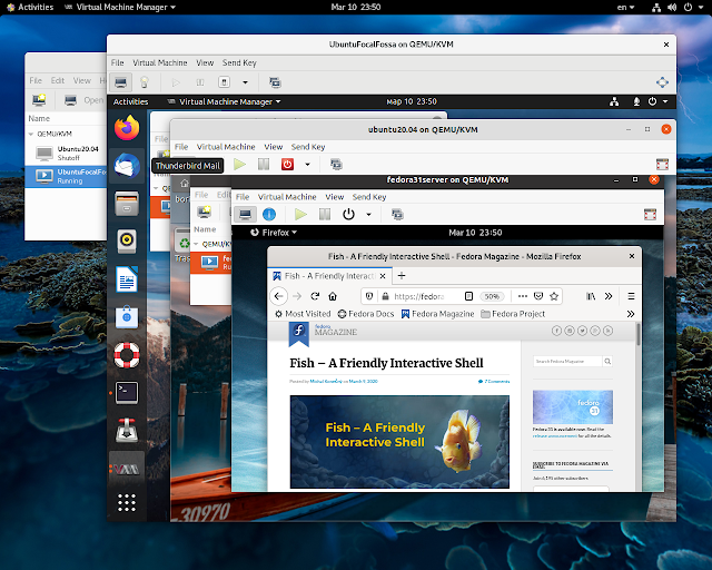 at L1 and L2 levels. L2-Ubuntu 20.04 Guest is starting up Fedora 31 Server domain at Level 3. L1 and L2 guests got their XML profiles updated with <cpu mode='host-passthrough'> in virsh console of parent domains. Advanced system administration via virsh CLI is also shown on the last three snapshots. Following below is the set commands setting up KVM Hypervisor on Ubuntu 20.04 :-